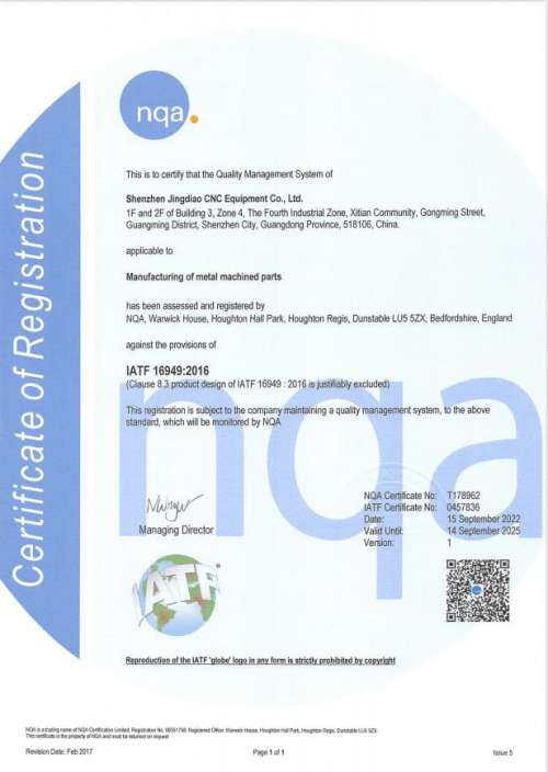 公司于2022年9月通过:IATF16949:2016 NQA 汽车认证质量管理体系